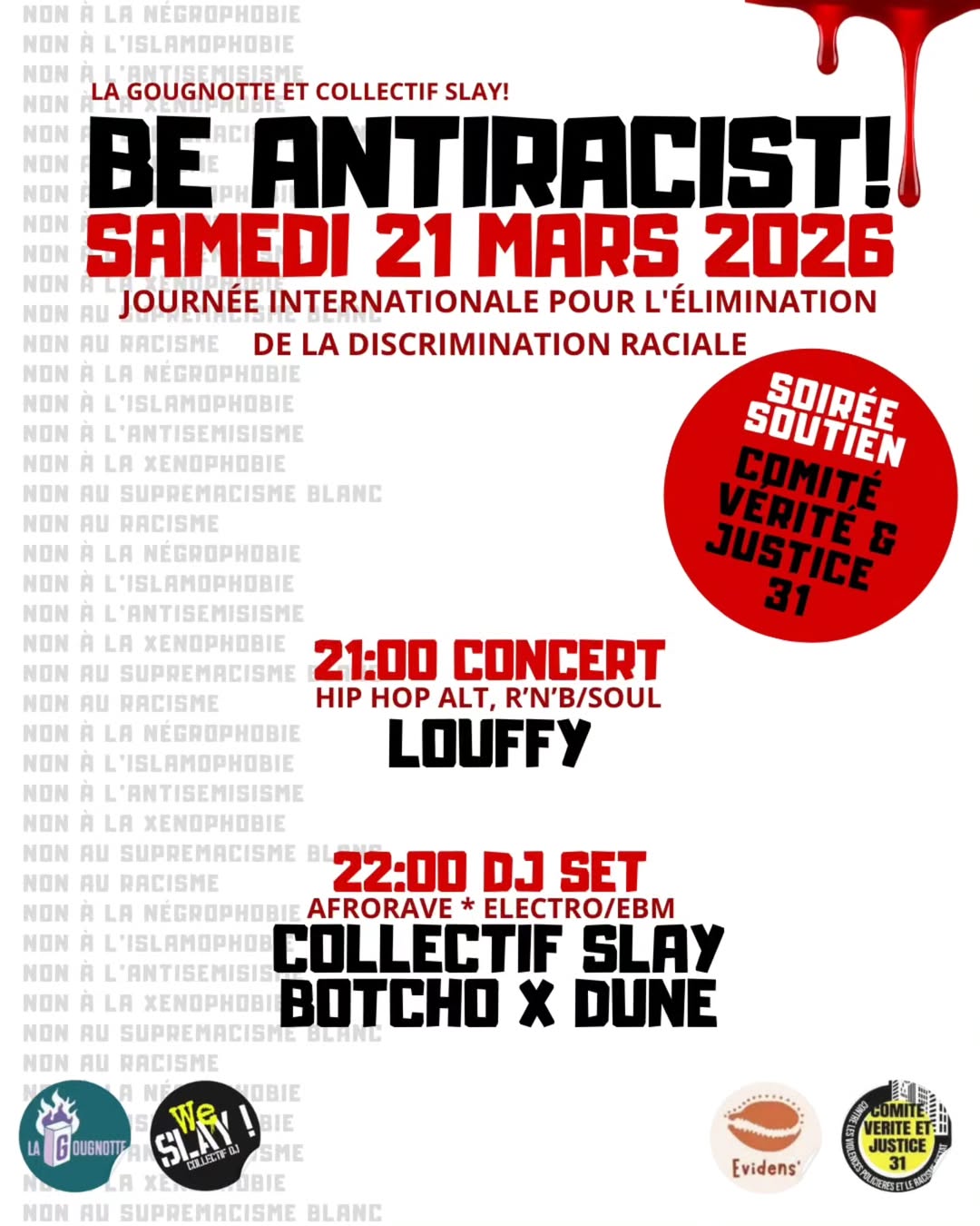 « Tous les Évènements Cet évènement est passé. BE ANTIRACIST! 21 mars | 21:00 « Theodora – Zénith Toulouse Métropole [COMPLET] Rambo goyard » Ajouter au calendrier Google Agenda iCalendar Outlook 365 Outlook Live Détails Date : 21 mars Heure : 21:00 Site : https://www.instagram.com/p/DVdklu5DUwb Organisateurs La Gougnotte Collectif Slay Lieu La Gougnotte 18 Avenue Etienne Billières Toulouse, 31300 + Google Map Voir Lieu site web