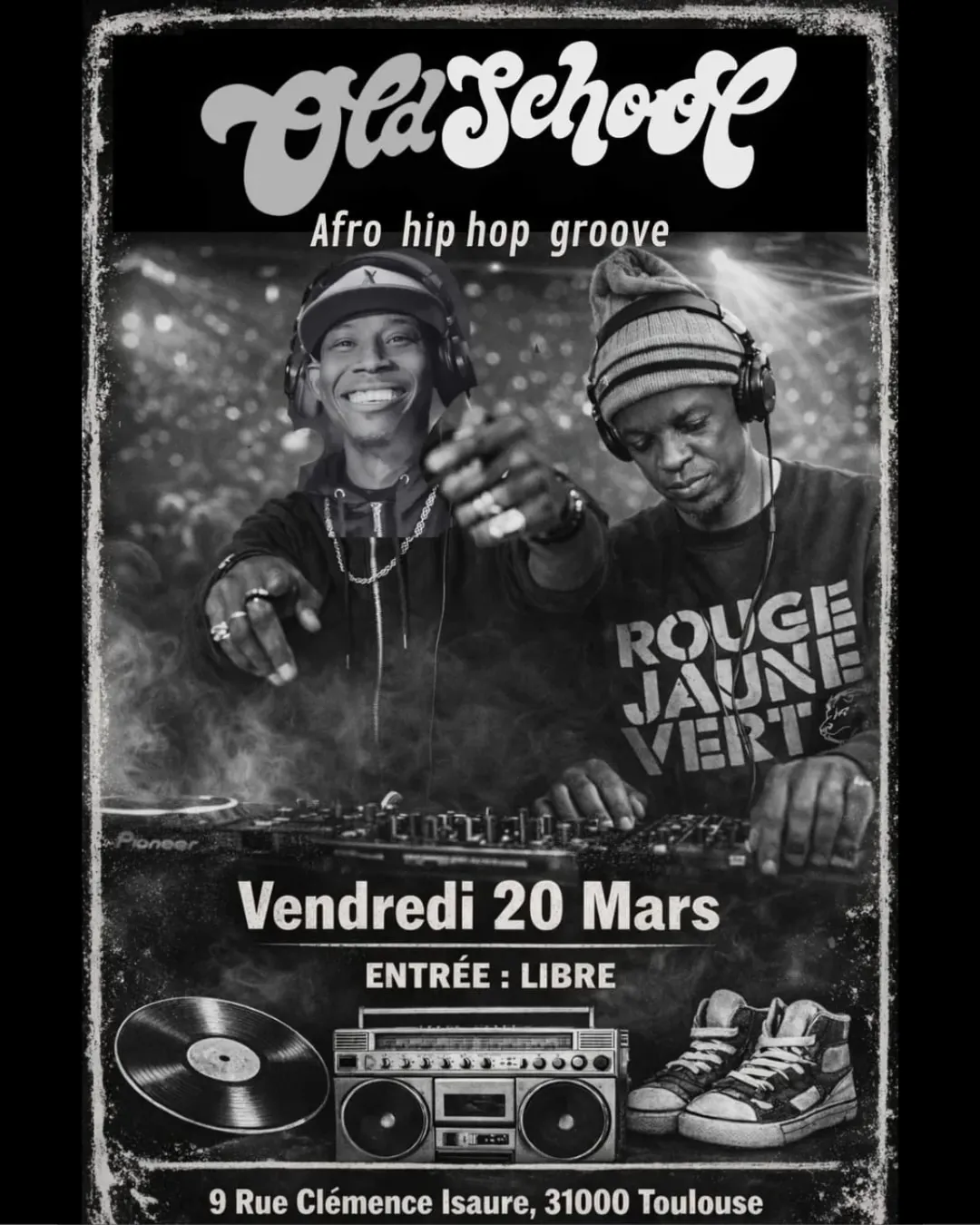 « Tous les Évènements Cet évènement est passé. OLD SCHOOL : Afro Hip Hop Groove 20 mars | 20:30 « SOUTH MAGAZINE LISTENING PARTY DJ Set – Mamelle Bent » Ajouter au calendrier Google Agenda iCalendar Outlook 365 Outlook Live Détails Date : 20 mars Heure : 20:30 Site : https://www.instagram.com/p/DVLTuNBCOgN/ Organisateur Dj djib’son Voir le site Organisateur Lieu Old School Toulouse 9 Rue Clémence Isaure Toulouse, 31000 France + Google Map Voir Lieu site web